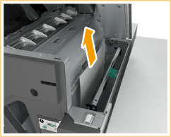 Hvis Document Insertion Unit-R er monteret tæt på finisheren, kan dele af dokumentisætningsenheden genere finisheren ved rydning af papirstop. Løft dokumentisætningsenheden op, inden du fjerner fastklemt papir fra finisheren.