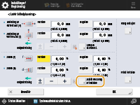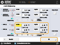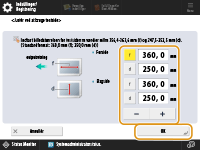 <f>: | Indtast den målte længde for mærket 'f' på testsiden. For det lange ark: Indtast den værdi, der beregnes fra den målte længde af mærket 'f' på testsiden for lange ark. Indtastet værdi = ((standard ‘f’-værdi: 360 mm)/målt ‘f’-position: 450, 550, 650 mm)) x målt ‘f’-værdi |