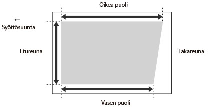 Tällä asetuksella voit korjata kuvan muotoa tasaamalla tulostusalueen vasemman ja oikean reunan pituuden kun kuva tulostuu kuin trapetsi.