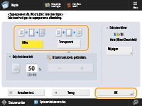 Om het afbeeldingsformulier te projecteren zonder de densiteit aan te passen, drukt u op <Effen>. Om het afbeeldingsformulier te projecteren met een lagere densiteit, drukt u op <Transparant> en past u de densiteit aan.