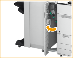 Controleren voor verwerkingSluit alle deksels die open staan. Zelfs wanneer er een scherm verschijnt waarin u wordt gevraagd om vastgelopen papier in de bufferdoorvoer te verwijderen, is het mogelijk dat lang papier in de machine is vastgelopen bij de multifunctionele lade. In dit geval verwijdert u het papier uit de multifunctionele lade. Papierstoringen in de rechterpanelen van de machine |
