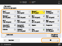 <OK>. Veelgebruikt papierformaat en -type voor de papiertafel opslaan