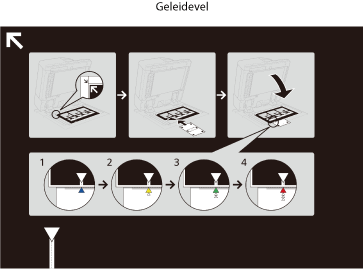 Open en sluit de aanvoer rustig. Zorg ervoor dat het geleidevel uitgelijnd blijft liggen als u de aanvoer sluit. |