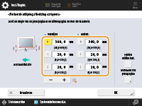 Ga terug naar het scherm <Onj. uitlijning afb. corrigeren> en voer de gemeten lengte in van <i> en <j> (voor lange vellen: de gemeten lengte van <h>, <i>, en <j>) voor de voor- en achterzijden.Maak gebruik van de volgende twee numerieke waarden en 'h = 360,0' (voor een lang vel: 'h = 360,0/450,0/550,0/650,0' voor [h] die zich het dichtst bij de achterrand van het papier bevindt) om het afdrukgebied en het papier parallel te maken.
