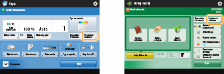 Możesz zmienić przyciski ustawień wyświetlane na ekranach podstawowych funkcji (dla kopiowania, faksowania i skanowania). Istnieje również możliwość wyświetlania innego, spersonalizowanego ekranu podstawowych funkcji dla każdego zalogowanego użytkownika.