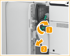 Após remover o papel longo encravado e fechar a tampa frontal da unidade de transferência, poderá ser apresentado um ecrã que solicita que abra a tampa frontal da unidade de inserção ou do finalizador. É possível fazer desaparecer este ecrã abrindo e fechando a tampa frontal em questão. |