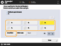 Se programar <Especificar sempre> em <Pré-programações tabuleiro multifunções> para <Papel favorito>, aparece um ecrã que permite selecionar o seu "Papel favorito" quando colocar papel no tabuleiro multifunções. <Pré-programações tabuleiro multifunções> |
