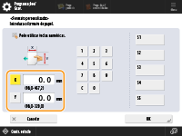 Carregue em <X> ou <Y> para introduzir o comprimento de cada lado com as teclas numéricas. ![]() Se gravar o formato de papel que utiliza frquentemente nos botões <S1> a <S5>, pode aceder-lhes com um só toque. Gravar papel de formato livre (Papel de formato personalizado) | |