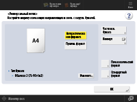 1 | Нажмите кнопку <Пользоват. формат>. ![]() Вы можете указать формат бумаги как <Произв. формат>, что избавит вас от необходимости вводить его при указании параметров. Укажите <Произв. формат>, если загружаете для копирования бумагу неизвестного формата или формат бумаги уже зарегистрирован в драйвере принтера. |