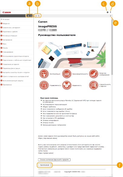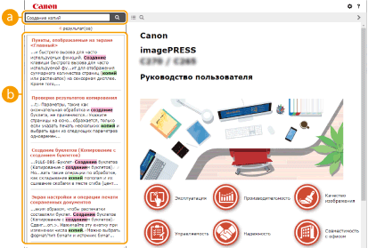 Служит для отображения указаний по просмотру документа Руководство пользователя, выполнению поиска и прочим операциям.