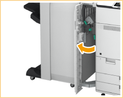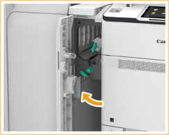 Stäng försiktigt den vänstra luckan på huvudenheten tills du hör ett klickljud.