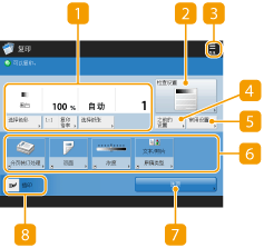 某些功能无法互相组合使用。无法选择的按钮显示为浅灰色。 如果使用“部门识别码管理”设置了页数限制,则剩余页数会显示。有关设置“部门识别码管理”和页数限制的信息,请参阅 配置部门识别码管理设置。 ![]() |