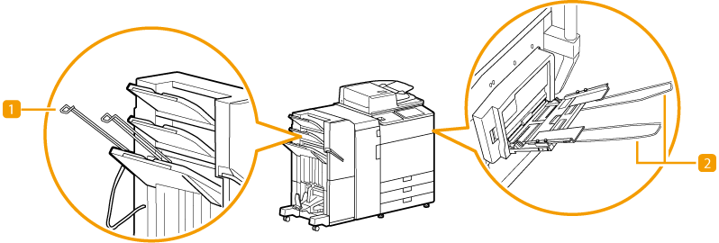 请勿使用卷曲的纸张。否则可能会导致卡纸或打印错误。有关纸张卷曲的注意事项 务必正确设置纸张类型。在重磅纸或透明纸等特殊类型的纸张上打印时,务必正确设置纸张类型(特别是在使用重磅纸时)。如未正确设置纸张类型,可能会影响图像质量。此外,定影组件可能会变脏而需要维修,或者可能发生卡纸。 该托盘无法使用折叠或装订等印后处理功能。 检查扩展供纸托盘是否正确安装。如未正确安装,可能会发生卡纸。