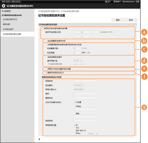 当成功执行自动请求颁发证书时,发出请求的下一个日期/时间将显示在[下次请求日期/时间:]中。
