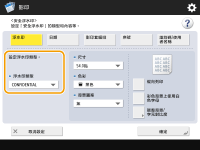在影印包含機密資訊的文件時,可以嵌入看不見的文字,如「最高機密」或「機密」,以警告未經授權的使用者勿影印這些資料。在影印已經影印過的文件時,嵌入的文字會出現在整個頁面上,避免影印文件遭到未授權的影印。系統選購配件