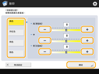 按鈕。若要個別設定色彩,請使用各色彩左側及右側的按鈕。調整完成時,按下 <確定>。