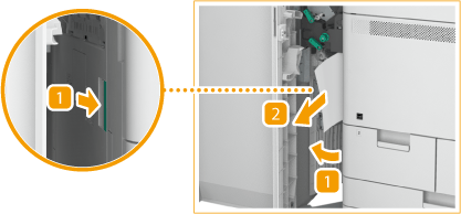 關上打開的蓋板。 如果已安裝側邊接紙盤,請取出其中的所有紙張。視卡紙類型而定,可能需要抬高側邊接紙盤。 |