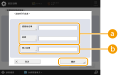 使用管理員權限輸入管理員的使用者名稱與密碼。請確定已經將該管理員註冊為用戶端機器的使用者,以及用戶端機器所使用的認證伺服器上的使用者。