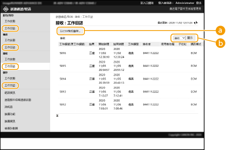可以匯出日誌資料並且儲存作為電腦中的 CSV 檔案 (*.csv)。
