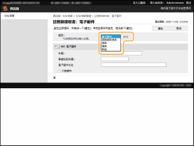 5 | 按一下 [註冊新接收者...] 或 [註冊新群組...]。 |