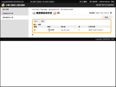 ![]() | 您可以使用遠端使用者介面來列印、傳送或刪除儲存在信箱中的檔案,或是暫時儲存在傳真/I-Fax 收件匣中的傳真和 I-fax。 |