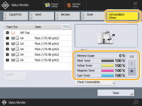 Press  (Status Monitor)  <Consumables/Others>  <Check Consumables>.