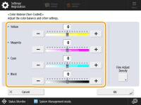Press  (Settings/Registration) <Adjustment/Maintenance> <Adjust Image Quality> <Color Balance>.