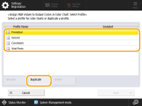 Select one of the existing registered profiles and press <Duplicate>. Next, enter the profile name and press <OK>.