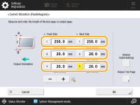 Return to the <Correct Distortion (Parallelogram)> screen, and enter the measured length of <g> and <a> for front and back sides.