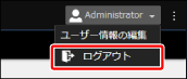 画面の上部にあるユーザー情報のメニューから、[ログアウト]を選択します。