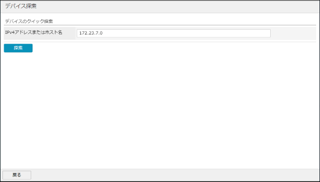 [デバイス探索]ページで探索するデバイスのIPv4アドレス、またはホスト名を入力します。
