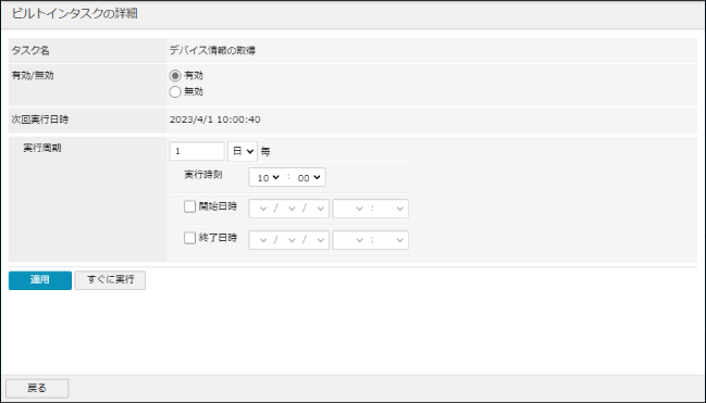 [有効] | 指定したスケジュールで、タスクが自動的に実行されます。 |