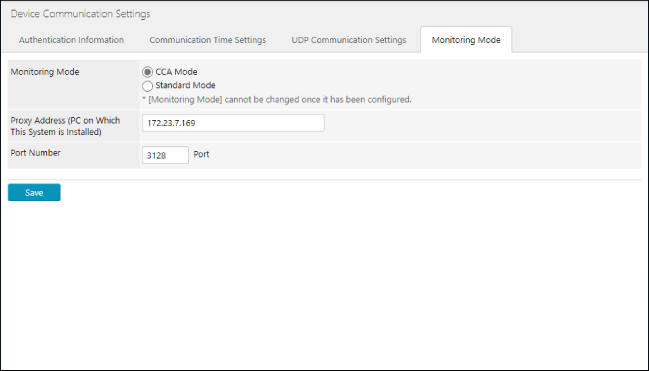When [CCA Mode] is selected for [Monitoring Mode], configure the proxy server settings.