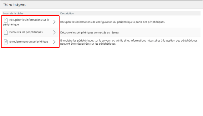 Sélectionnez la tâche intégrée à vérifier dans la liste de la page [Tâches intégrées].