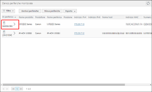 [ID periferica] | La voce [ID periferica] può essere modificata se tutte le condizioni indicate di seguito sono soddisfatte. [Ottieni informazioni gestione periferica] è impostato su [Consentito] L'[ID periferica] non è impostato Periferiche gestite di questo software Meno di 1.000 periferiche con [ID periferica] impostato |