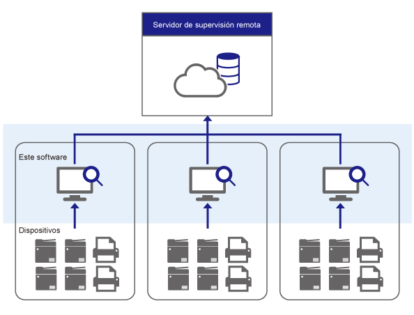 Este software recupera información del dispositivo y envía la información recuperada al servidor de supervisión remota a través de HTTPS, independientemente de si los dispositivos de supervisión tienen la función Cloud Connection Agent.
