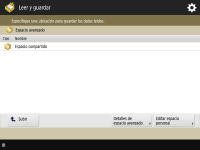 Pantalla de selección de almacenamiento