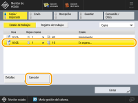 Seleccione los trabajos de copia para cancelar y pulse <Cancelar>.