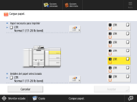 Para obtener información sobre el gramaje básico y el tamaño de papel que se pueden usar, consulte los elementos de la "Depósito de Papel Multibandeja E" en "Papel disponible". |