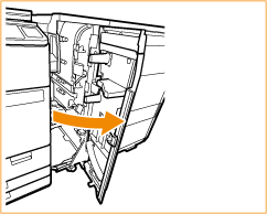 Si el papel se atasca, primero saque con cuidado el papel atascado de la parte exterior de la tapa superior derecha siguiendo la dirección de la flecha.