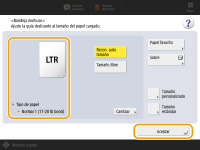 Compruebe el tamaño y el tipo de papel, y pulse <Aceptar>.