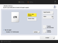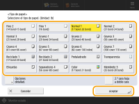 <Aceptar>. Registrar el tamaño y el tipo de papel de uso frecuente para la bandeja multiuso