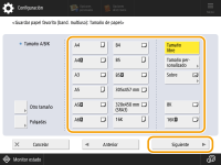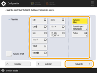 2 | Seleccione el tamaño de papel. ![]() ![]() Para obtener información sobre los tamaños de papel mostrados cuando se pulsa <Otro tamaño>, consulte Papel disponible. |