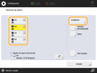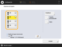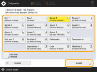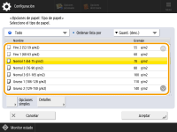 Si no se muestra el tipo de papel cargado, pulse <Opciones detallad.> para seleccionarlo de una lista.