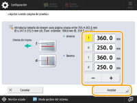 Si la posición de la imagen varía mucho, la precisión de la corrección podrá mejorarse imprimiendo varias páginas de prueba y utilizando una media de la longitud medida. |