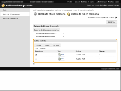 Gestionar documentos almacenados temporalmente en el Buzón RX de memoria