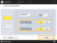 Seleccione <No> para las funciones que desee gestionar, y luego pulse <Aceptar>.