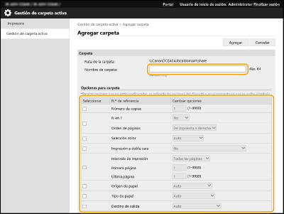 Haga clic en [Impresora]  [Gestión de carpeta activa].