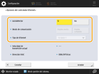Normalmente, pulse <Sí> en <Autodetectar>. El sistema de comunicación y el tipo de Ethernet se detectan y se configuran automáticamente.