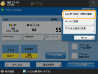 プリントなどで毎回同じ設定を使う場合や、複雑な設定を控えておきたい場合は、設定内容を「よく使う設定」として登録しておくと、すぐに呼び出すことができて便利です。